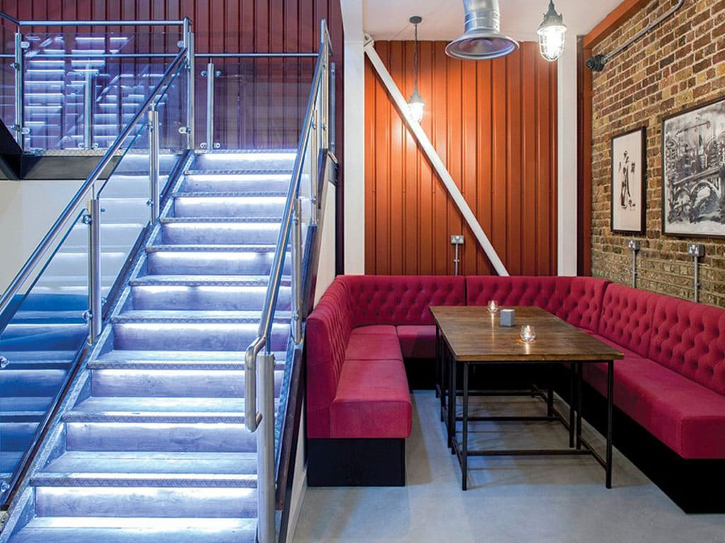 Sama Bankside bar is a sleek, large open space exposed brick wall event space restaurant and cocktail bar split over two floors with a bar on each floor as well as a separate private dining room.