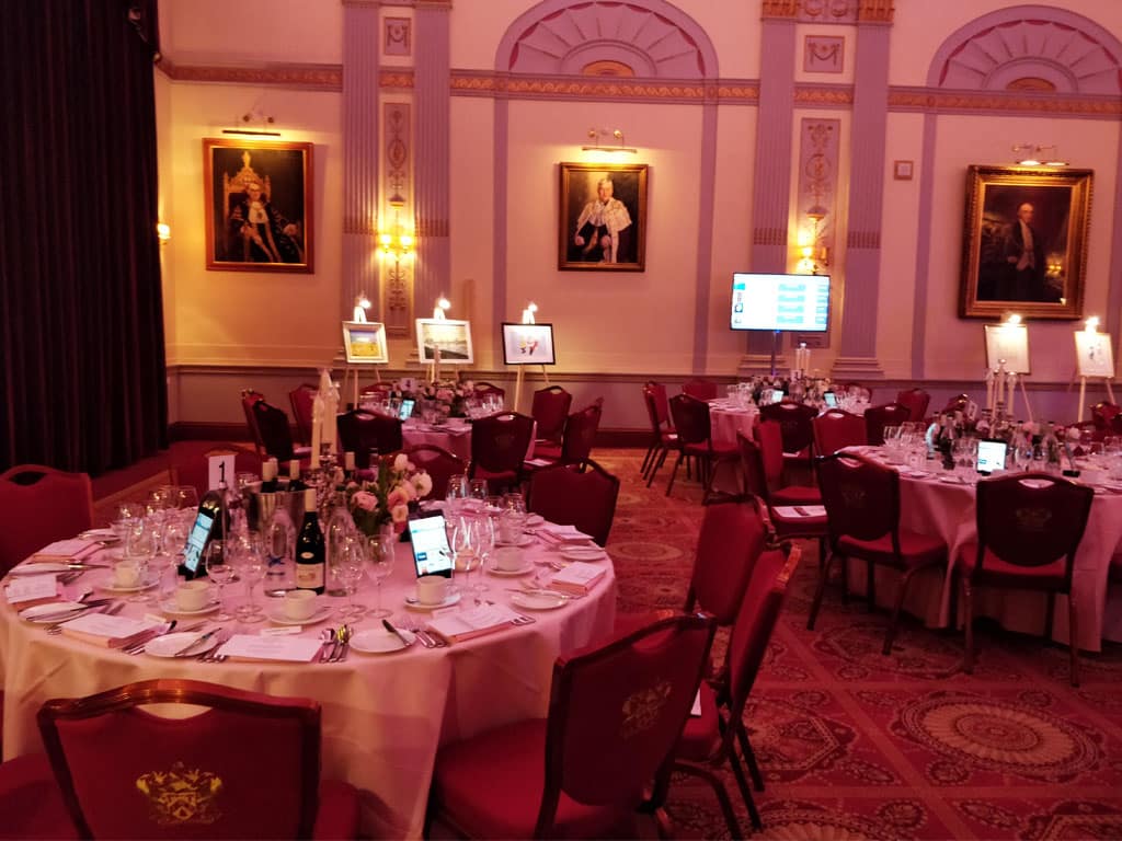 The venue provided the staging in grey (other colors are available), and the Plaisterers Hall has built-in uplighting, so we didn’t need to supply any.