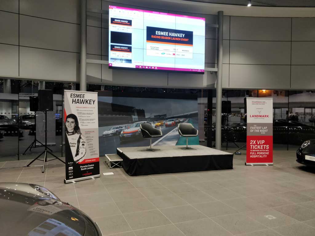 The Porsche South London racing event began with welcome drinks and a car showcase from 7-8 pm. This was followed by a brief 5-minute video about female racing, then a talk with Esmee Hawkey and a Q&A panel from 8-9 pm.