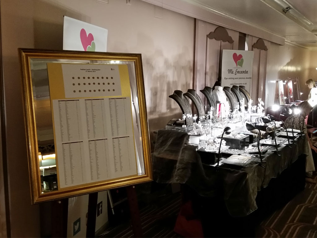 The event commenced with welcome drinks and canapés for the guests and an opportunity for individual designers to sell and showcase their unique custom one off made items in the lounge area. The guests then made their way into the event room where they were served a three course lunch meal with the auction between starter and main and then the Sheraton fashion show between desert.
